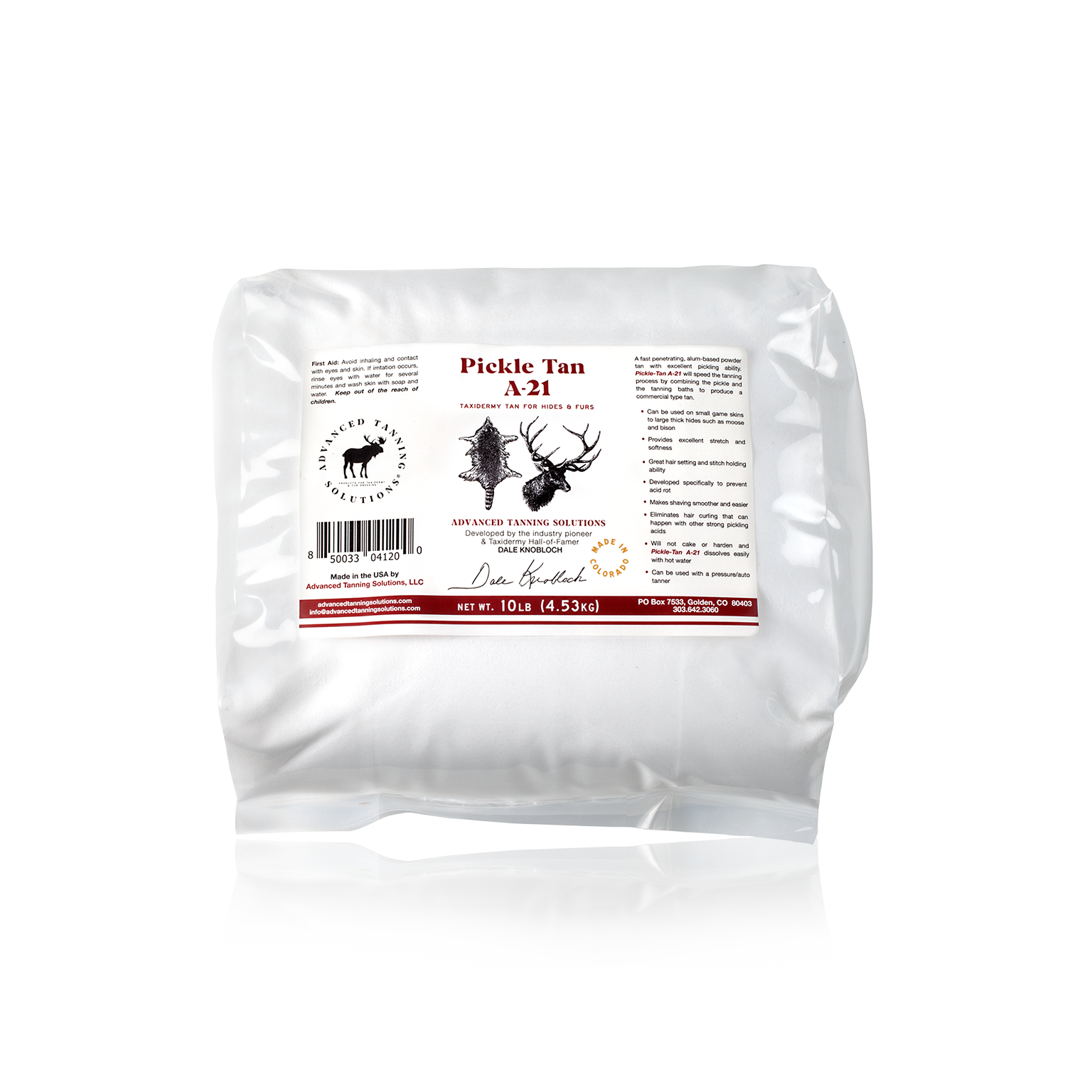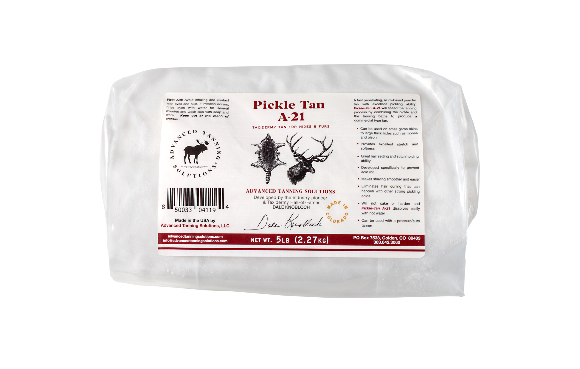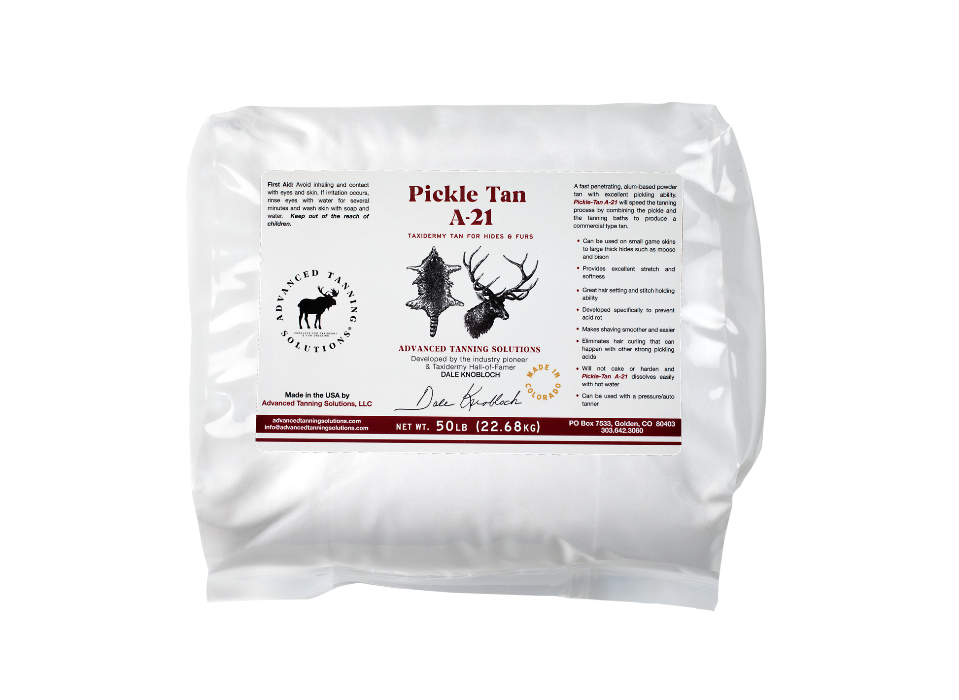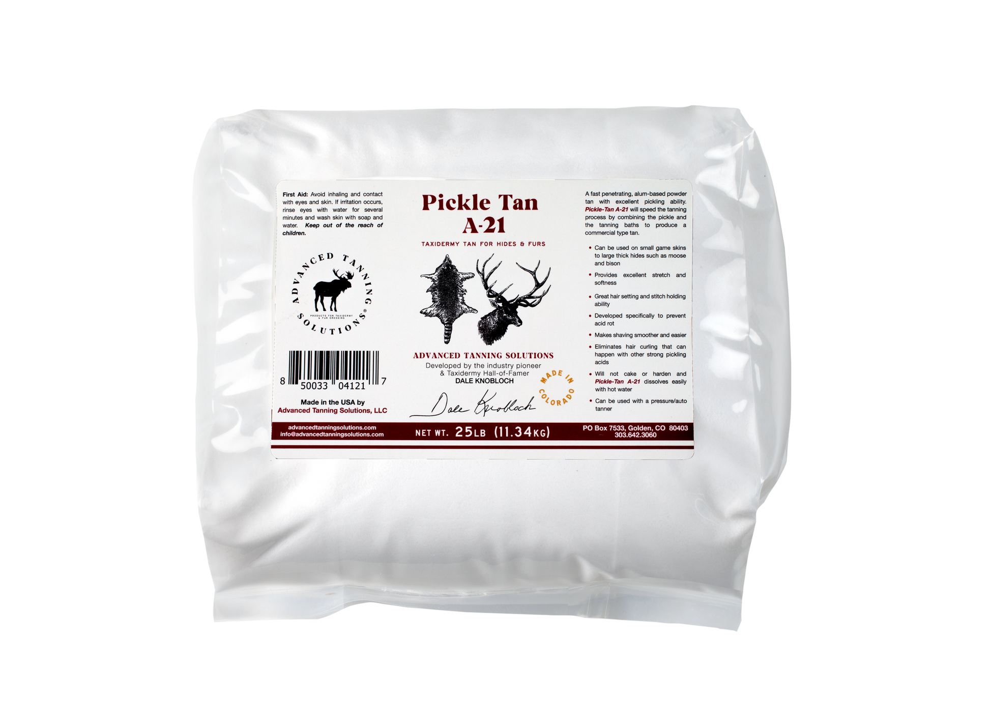 A totally NEW concept! Pickle-Tan A-21 is a powder tan that pickles and tans all in one. Developed specifically to prevent acid rot. It will speed the tanning process by combining the pickle and tanning baths to save time and money. Has minimal shrinkage and will make shaving smoother and easier compared to acid pickles.