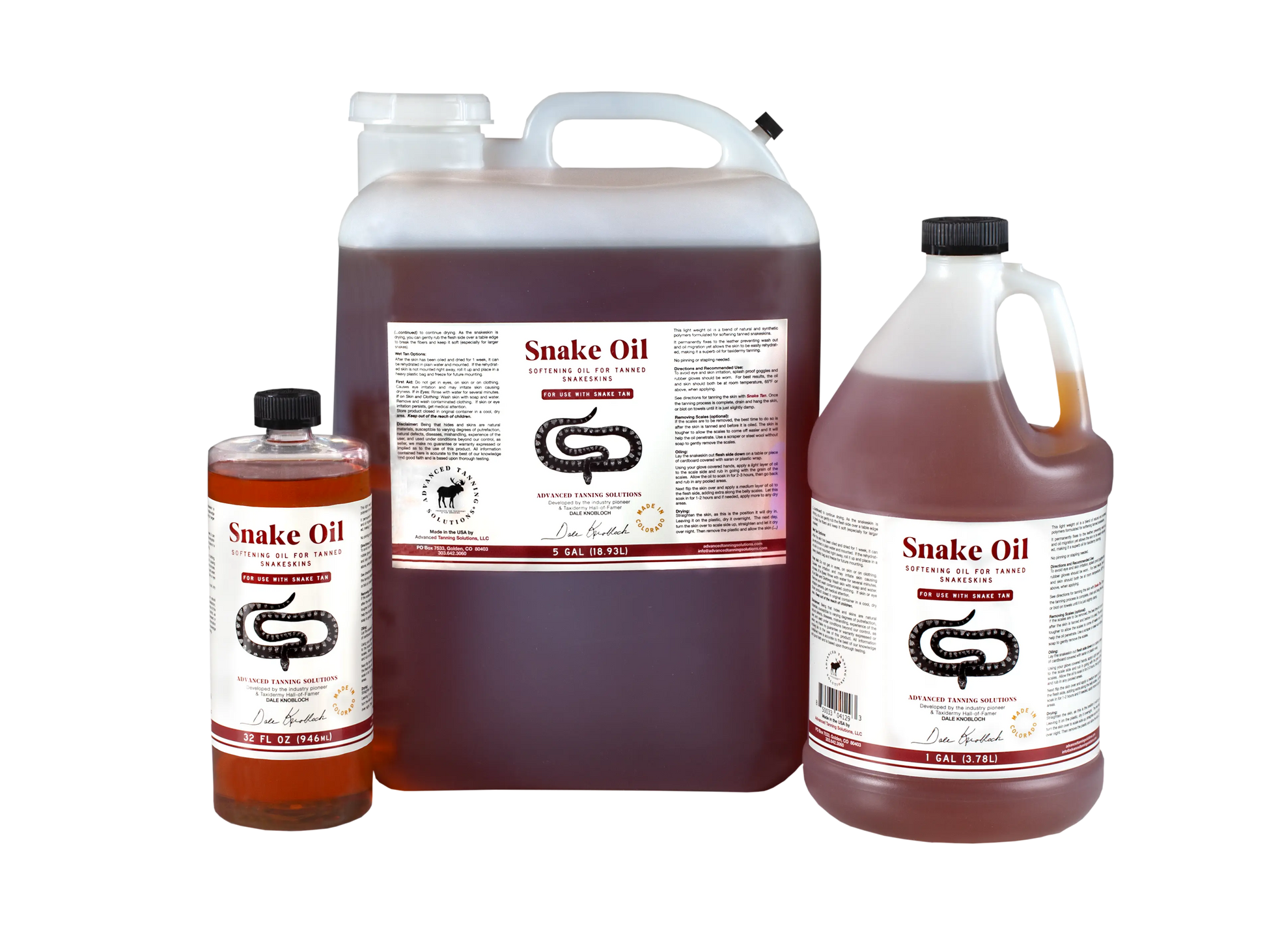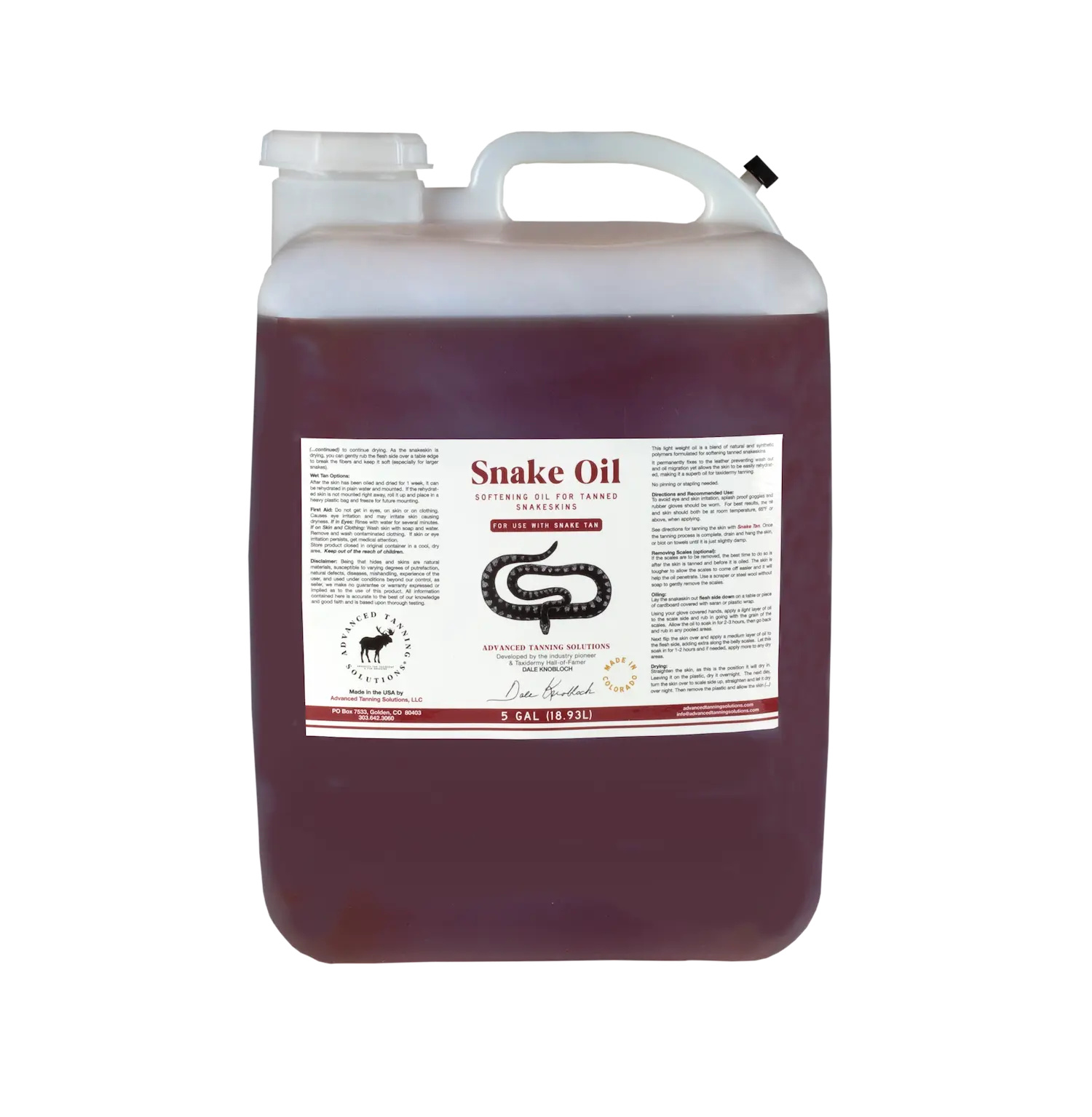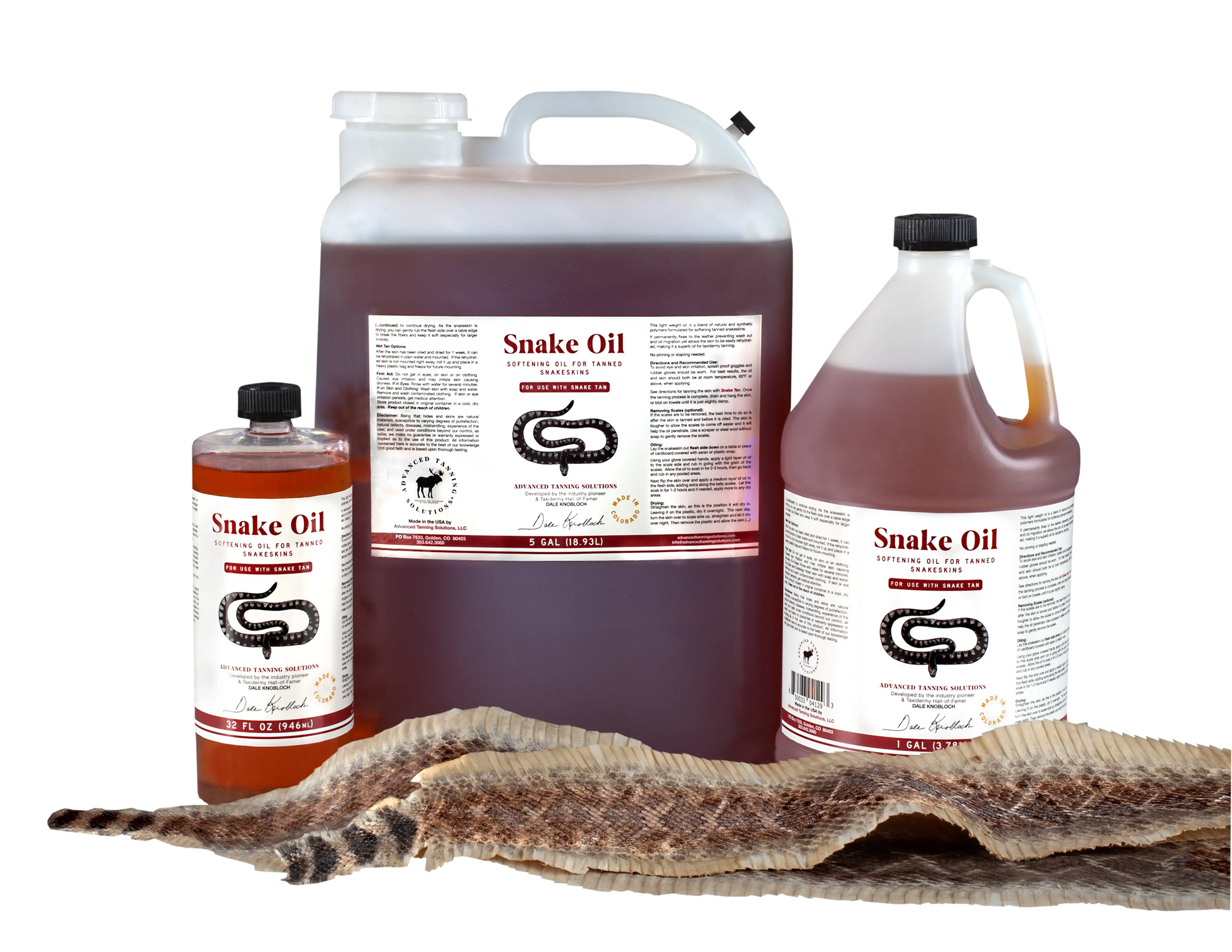 Snake Oil easily absorbs into the skin without leaving an oily residue. It is the final step in producing a soft, flexible snakeskin leather.